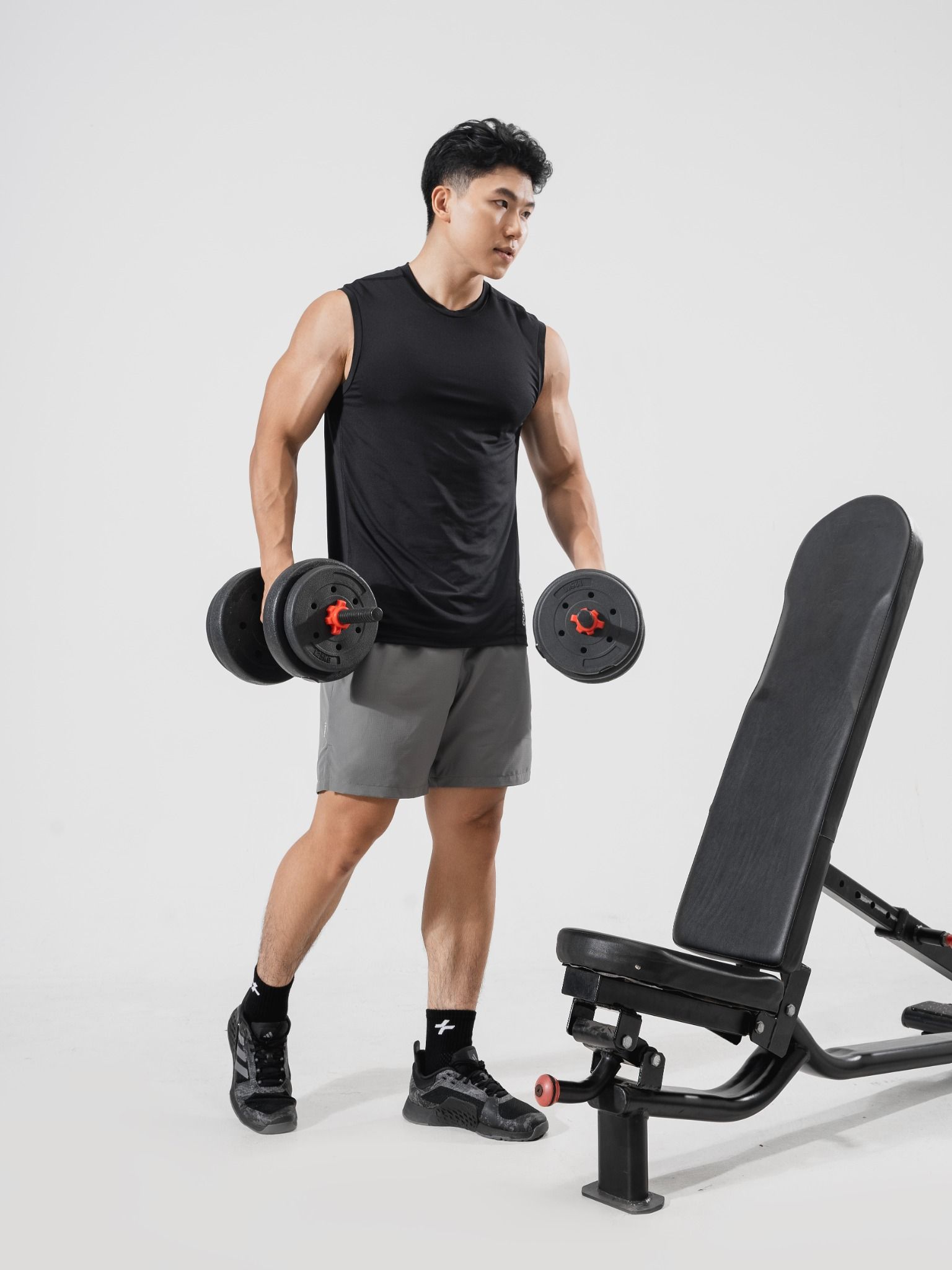 Để có một bộ trang phục tập luyện hoàn chỉnh, bạn có thể kết hợp áo cùng một chiếc quần tập gym nam và các loại phụ kiện gym nam chuyên dụng.