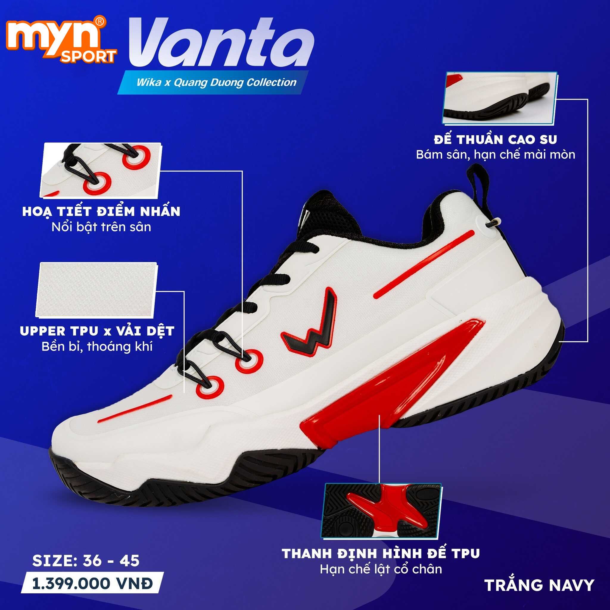- Tên Sản phẩm: Giày Pickleball WIKA VANTA x QUANG DƯƠNG Pro Series